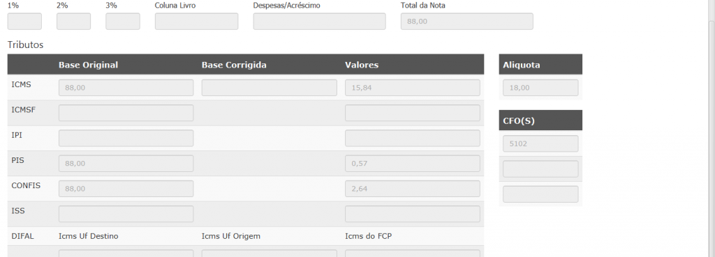 Acima temos a tela de Dados da NF, os botões da lateral direita acessam as telas abaixo: