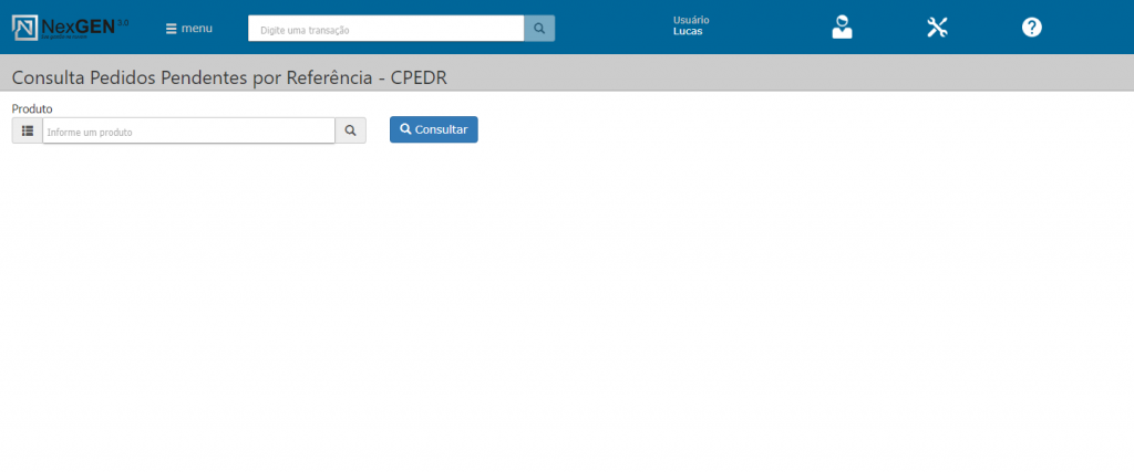 Objetivo: Nesta transação realiza-se a consulta por produtos(referência), de pedidos de compra que se encontram pendentes.