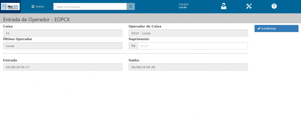 Para realizar a Entrada do Operador clique em “Confirmar”.