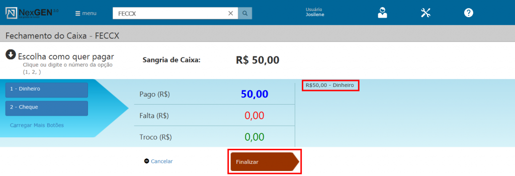 Após incluir basta clicar no botão “Finalizar” que o Fechamento do Caixa estará realizado.