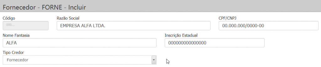 Objetivo: Efetuar o cadastramento de Credores, das entidades onde a empresa-usuária contraiu o débito, ou seja, é o fornecedor do bem adquirido pela empresa.