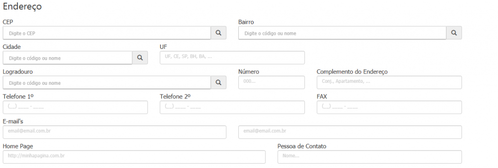*Endereço: O NexGen 3.0 possui a função de pesquisa dinâmica, onde, ao inserir os dados, o sistema apresenta opções de preenchimento. Ao realizar o preenchimento dos campos, você poderá inserir o nome ou o código da informação.