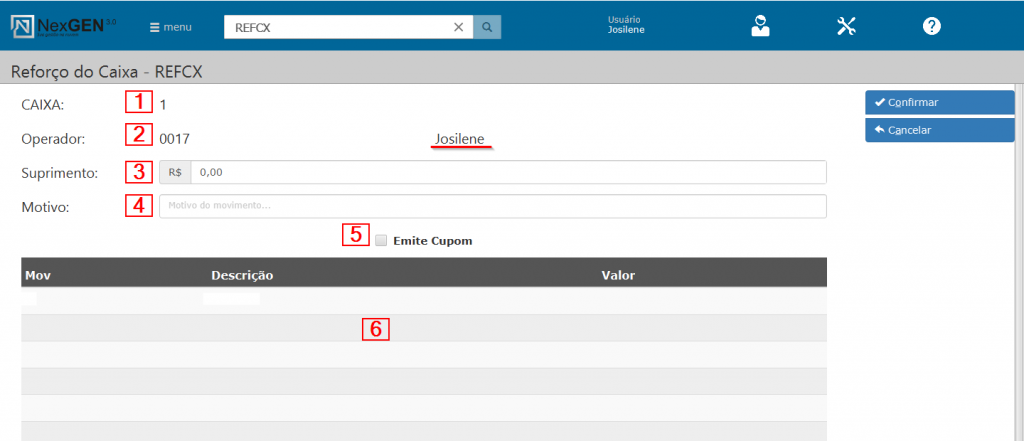 Reforço do Caixa – REFCX