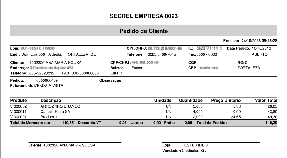 Então, após preencher todos os campos clique em “Imprimir” para gerar o relatório e lá você poderá visualizar os itens do seu pedido.