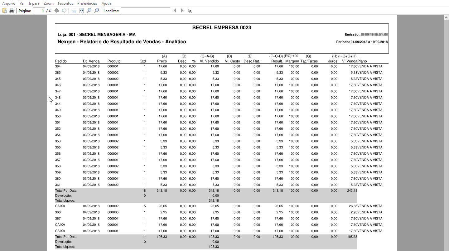 - Sintético: é um relatório onde apresenta os principais dados referente aos resultados de suas vendas.